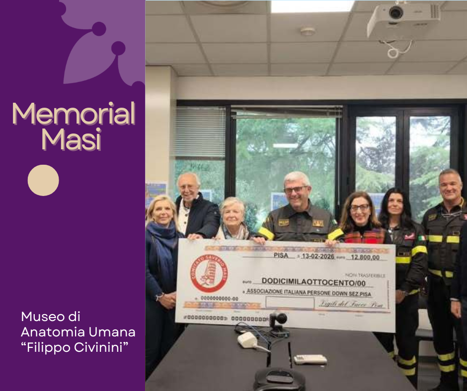 Pisa, 16 febbraio 2026 – Il Memorial Saverio Masi, manifestazione promossa in memoria del vigile del fuoco Saverio Masi, giunta alla sua 19° edizione, si è conclusa venerdì 13 febbraio 2026 con la consegna di 12.800 euro alla sezione pisana dell’Associazione Italiana Persone Down (AIPD ) da parte dei Vigili del Fuoco di Pisa.